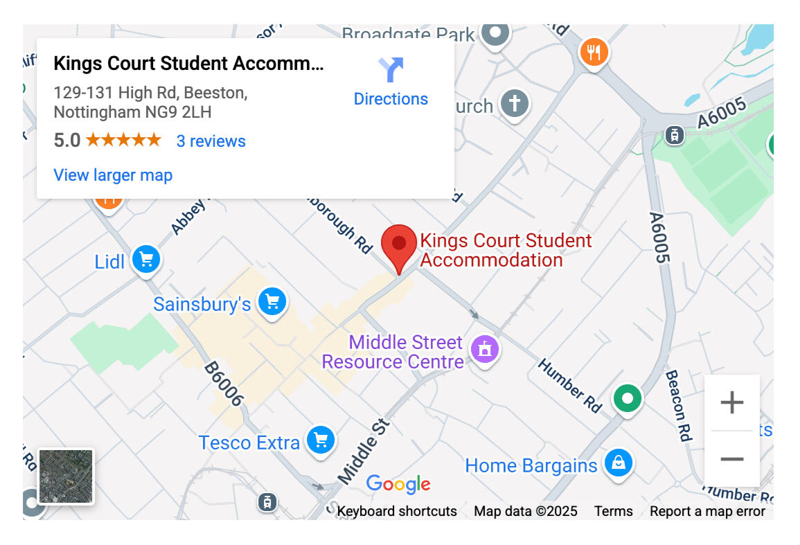 Beeston is a lively town just west of Nottingham city centre, popular with University of Nottingham students for its shops, cafes, and excellent transport links. University Park Campus, the university’s largest site, offers stunning parkland, a boating lake, and modern facilities, just a short tram or bus ride away. Kaplan Nottingham, based in the city centre, prepares international students for degree study and provides easy access to both University Park and Beeston. Together, they create a vibrant and convenient environment for study and everyday life.
